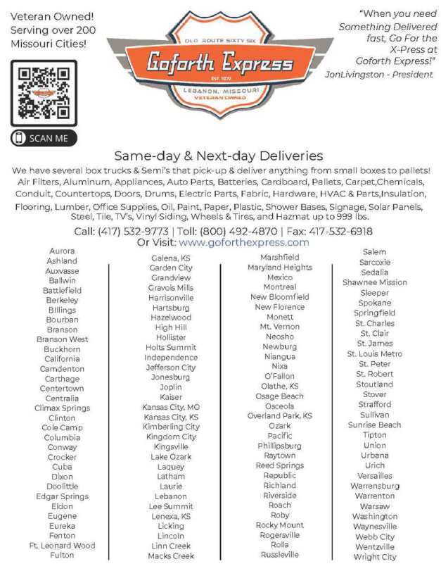 DBA Goforth Express 1350 Springfield Road P.O. Box 1287 Lebanon, MO 65536 Bus: 417-532-9773